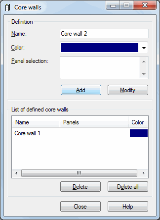 The defined core wall will be added to the list of defined core walls which is located in the bottom part of the dialog.