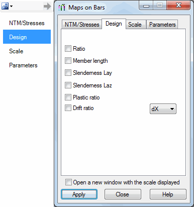 To support a large number of tabs, some dialogs have tabs along their left sides. For example, the Maps on Bars dialog.