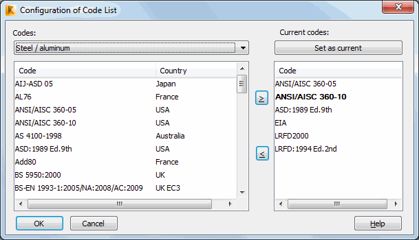 Use this dialog to set up the list of available codes for design codes and loads.