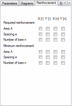 Select the Reinforcement tab in the Panel cuts dialog to select reinforcement for presentation.
