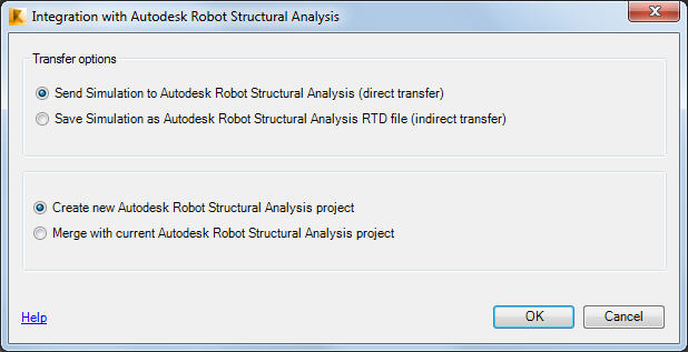 - Send Simulation to Autodesk Robot Structural Analysis 2017 (direct transfer) - creates calculation model directly in Robot on the base of the current Simulation in the FA module. The option is not available if the Robot is not installed.