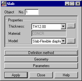When the Slab dialog is fully opened, then clicking one of the 3 buttons (Definition Method, Geometry, or Parameters) minimizes the corresponding part of the dialog so it displays only the options used at a given time. When the window is minimized, clicking one of the button extends the dialog.
