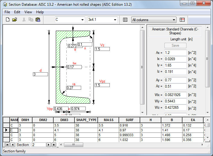 - to open the Section Database viewer. The viewer displays information about standard sections and provides tools to perform operations in section databases.