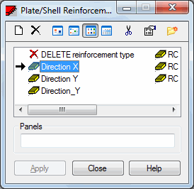 If the active reinforcement type list is empty or a new reinforcement type is to be added to the active list, click on new reinforcement type parameters.