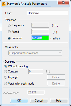 Use this dialog to set up harmonic analysis parameters for a dynamic case.