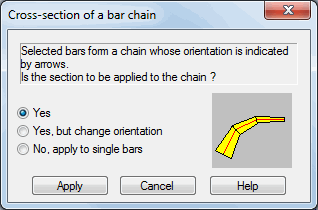 In the dialog, you can define how you want to assign the section to the bars. At the top of the dialog, a question displays whether the section is to be applied to the chain of bars. There are 3 ways to apply the section: