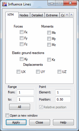 Use the Influence Lines dialog to create influence lines for a selected quantity.