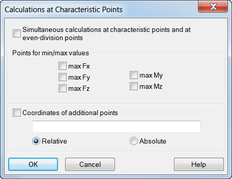 Use this dialog to define coordinates of the characteristic points, for which member calculations or verifications will be performed.