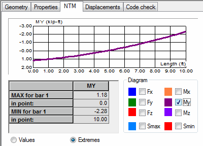 When you select Values, Robot displays the values of the selected quantity at the indicated point, whose coordinates are on the bar.