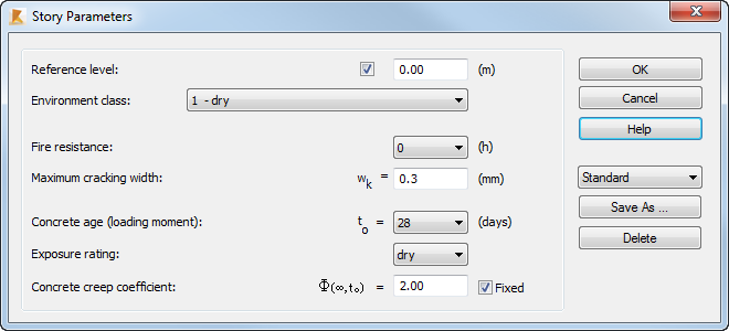 The Story Parameters dialog allows you to define parameters of a story according to the Eurocode 2 (Belgian NAD) code.