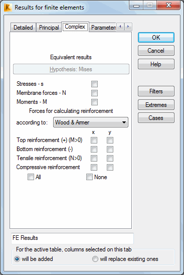 Select the Complex tab in the Columns dialog to select complex results for presentation.