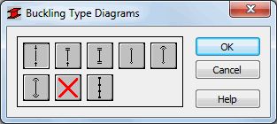 The coefficient for buckling length calculation is entered automatically after selecting one of the icons with the appropriate bar-end-support conditions. Buckling is always considered in the calculation if a compression force appears in the member, even if it is negligible in comparison to other internal forces. A separate analysis to determine if buckling effects should be disregarded is not performed. To eliminate buckling effects from the calculations, the