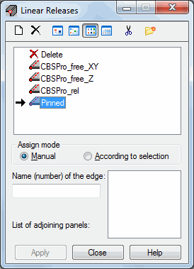 This option defines linear releases in plate-shell structures. The released degree of freedom option for planar finite elements defines pinned connections between panels of plates and shells. Open the Linear Releases dialog using either method: