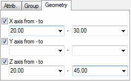 Here you can determine positions of the beginning and end structure axes (in all directions of the coordinate system), between which objects are to be selected.