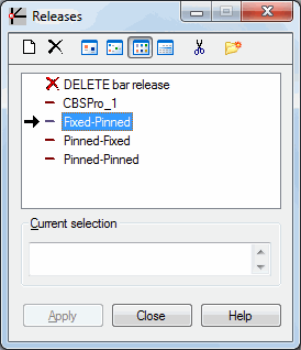 - Current selection field - Displays the current selection of the structure nodes or bar. You can define a release in a structure's nodes or bars.
