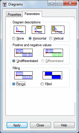 On the Parameters tab of the Diagrams (thin-walled section) dialog, you can select the manner of presenting diagrams on a structure.