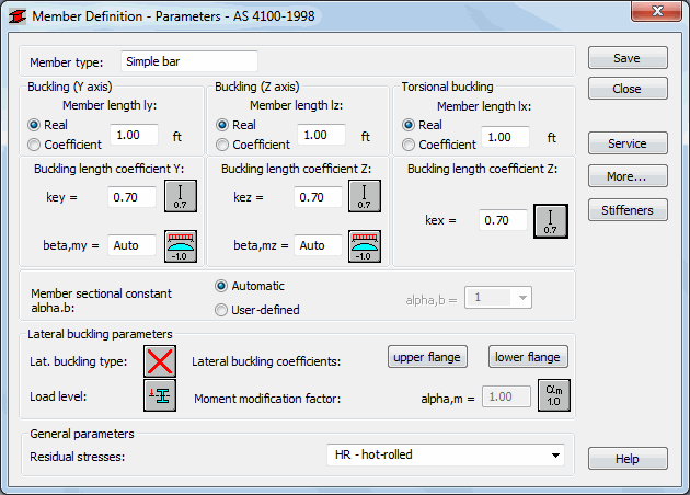 The member sectional constant is used to select the member sectional constant alpha,b, which determines a buckling coefficient. A value of the member sectional constant can be selected automatically, based on the section type and class.