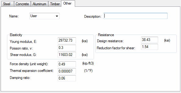 - Damping ratio - specifies the damping ratio for the user-defined material. This ratio is used for the dynamic analysis of structures.
