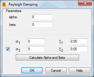 The damping matrix C is calculated as a combination of the stiffness matrix K and mass matrix M with the enumerated parameters taken into account: