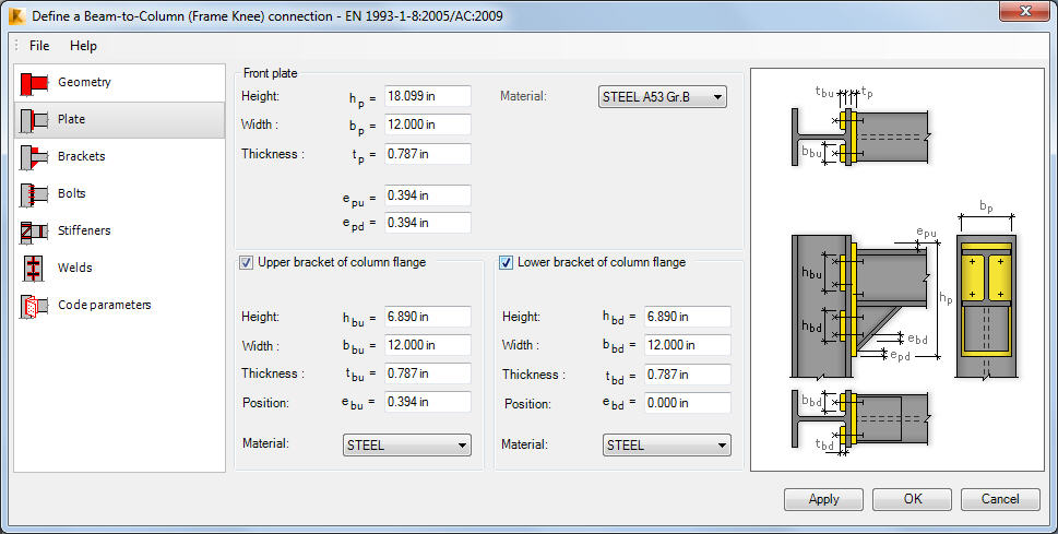 Select Upper bracket of column flange or Lower bracket of column flange to define an additional (upper or lower) bracket of the column flange.