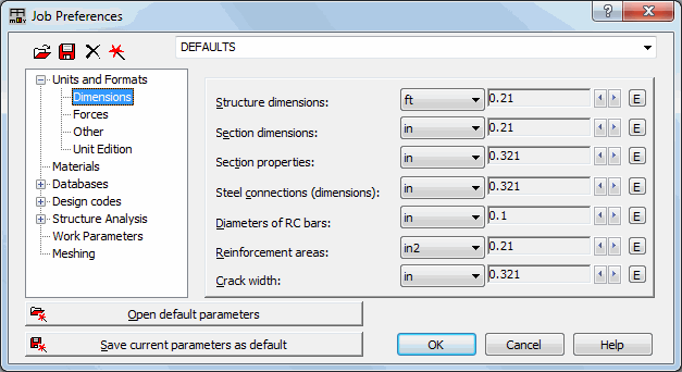 - Opens the job preferences file, which you set to be used for new projects by default.