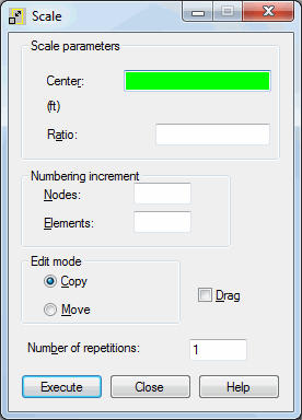 Open the Scale dialog to define scaling for structure nodes or elements, using either method: