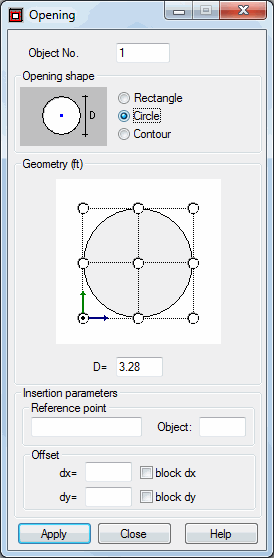 2. Define the dimensions of the opening (or select an opening contour) and select a characteristic point on the opening contour.