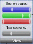 Each slider has 2 controls (on the right and left side); the controls allow you to move limiting planes that are parallel to the main planes of the coordinate system.