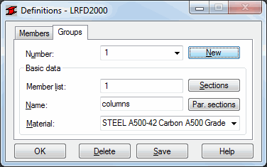 Group Design and Optimization is performed in groups. Hence, when the user is verifying bar sections, group definition is not necessary. If, however, design or optimization procedures are planned, groups must be defined. The basic reason for grouping bars is the need to obtain one section for all bars once the design is completed. Hence, the most frequent requirement employed in group creation is the identical bar structure function - exterior columns of industrial halls, main floor beams, etc. These elements should be made from one type of section.