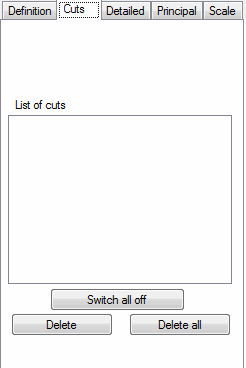 The List of Cuts field shows all cuts defined for a structure. For each cut, three pieces of information are presented.