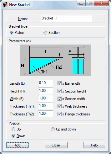 Note: A bracket defined through relative values is automatically adjusted to the bar and the section. Therefore changing the section during design, changes the bracket dimensions that depend on the section dimensions.