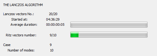 The calculations dialog for the Lanczos method shows the following phases: