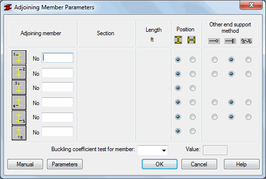 To define the parameters of adjoining bars when calculating the buckling coefficient of the main bar, double-click