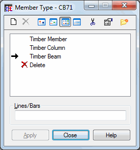 on the toolbar or select Design > Timber Members Design - Options > Code Parameters to select and/or define structure steel bar types.