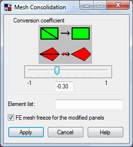 If you use +1 as a coefficient, rectangles are created from triangles in all possible places within the indicated area. This, however, can generate rectangles with incorrect shapes resulting in the ill-conditioning of a set of equations. If you use -1 as the coefficient, only those triangular elements that form a rectangle are changed.