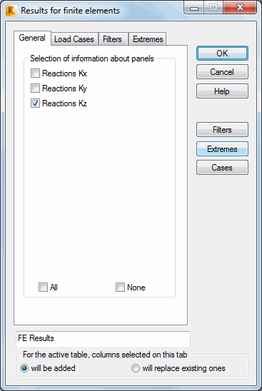 - Reactions KZ - A value of the KZ reaction is displayed. It is represented as a sum (integral) of the elastic ground reaction for a panel on the elastic ground. The value is constant for a whole panel.