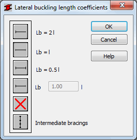 To properly calculate the lateral buckling coefficient, it is necessary to define the lateral buckling length. Define the buckling length coefficient by clicking the icon and edit field provided.