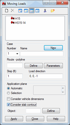 Clicking Apply creates a new moving load case, whose parameters are defined in the dialog.