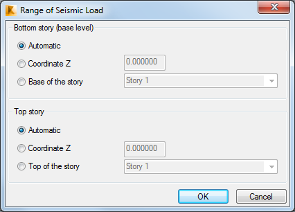 The range of Seismic Loads limits the levels where the seismic load is distributed and defines the structure height for fundamental period calculation with approximate method.