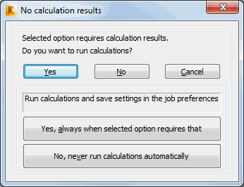 - Select how the program prompts you when an option that requires results is called up and prior calculations have not been run.