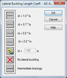 This option is used to define the appropriate distances of member sections protected against torsion, i.e. lateral buckling length. This option is available after pressing one of the following buttons: Upper Flange or Lower Flange in the Lateral Buckling Parameters field of the Member Definition - Parameters dialog box