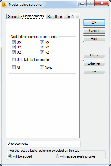 You can select the following nodal displacement components.