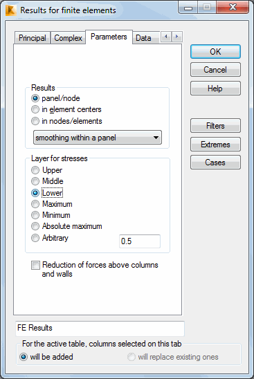 In the Layer for stresses field: Upper, Middle, Lower, Maximum, Minimum, Maximum or Arbitrary (coordinates are given in the edit field).