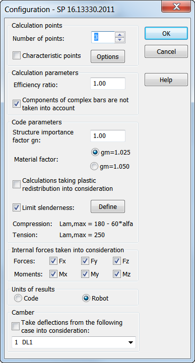 - Specify if you want to use the Russian steel code units or the units used in Robot in your member design results.