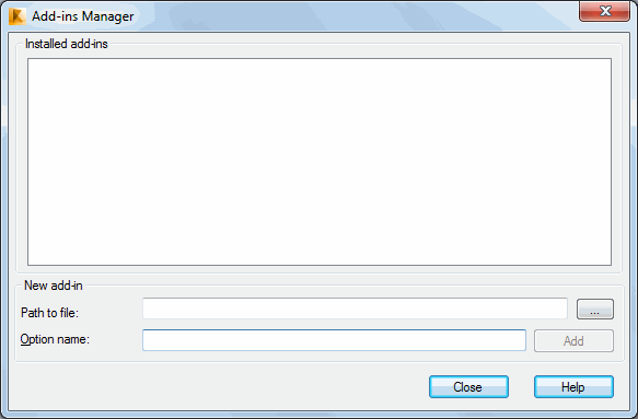 Click Add-ins > Add-ins Manager to open the Add-ins Manager dialog. This option lets you install and add add-ins (programs) to the appropriate places in the Robot menu.
