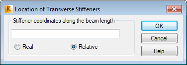 Use this dialog to determine the spacing of transverse stiffeners along the beam length, with real coordinates or in relation to the beam length.