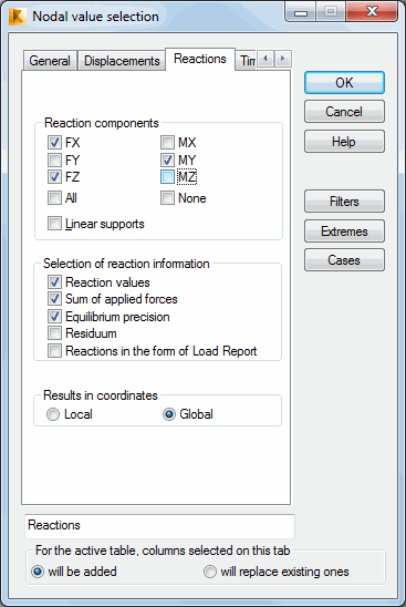 You can select either local or global coordinate systems in which the obtained reaction values will be presented.