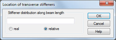 The above dialog box enables defining the distribution of transverse stiffeners over the beam length (in real or relative coordinates with respect to the beam length).