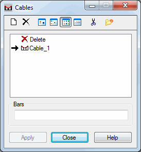 The Cables dialog lets you assign cable properties to structure elements. It has: