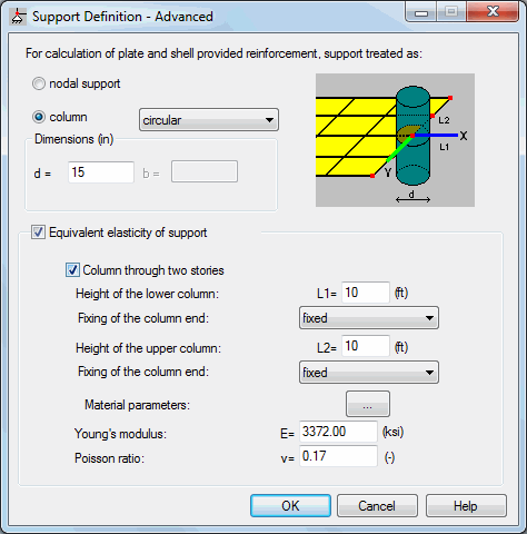 When the Equivalent elasticity of support option is selected, the following parameters needed that are needed for calculations become available: